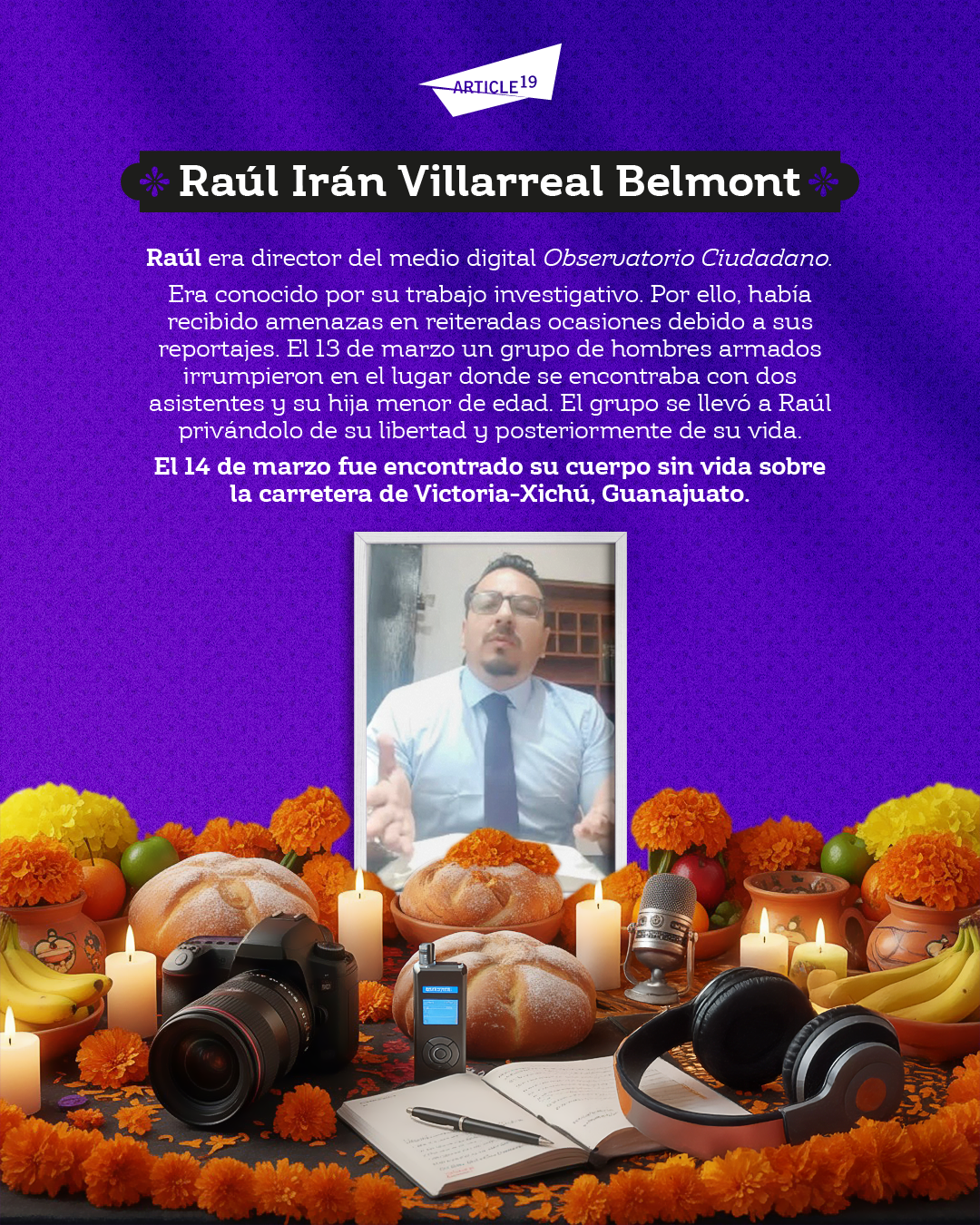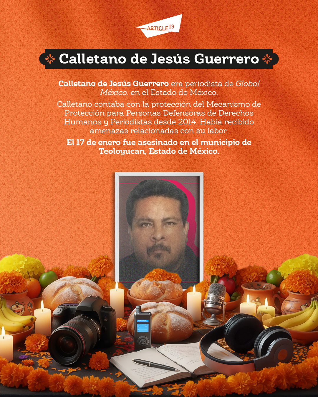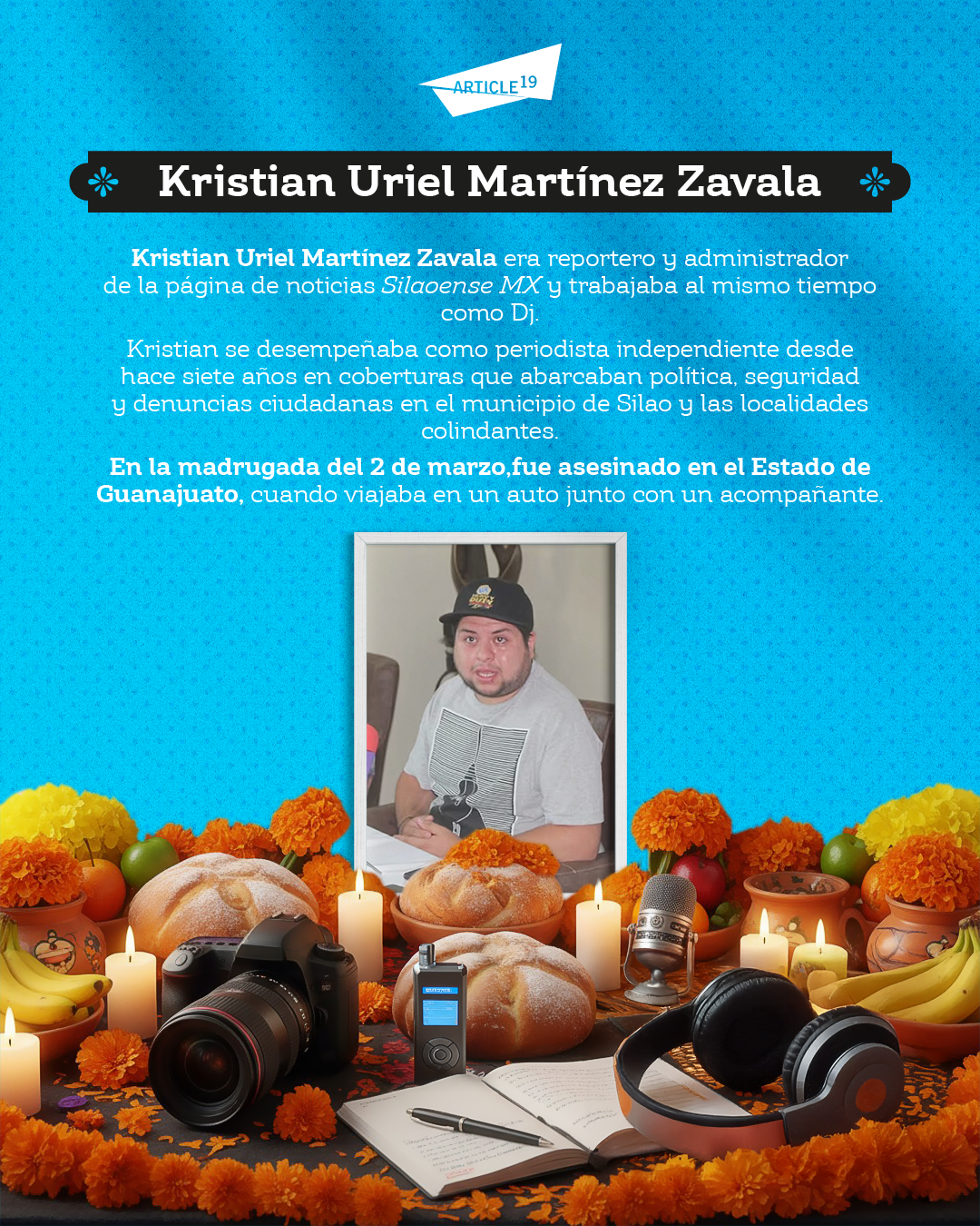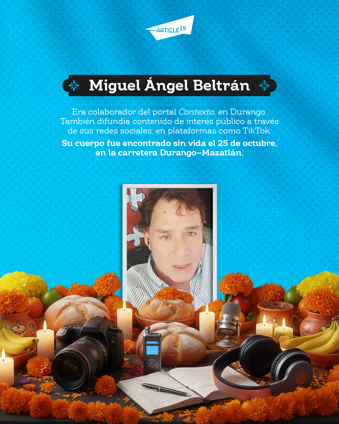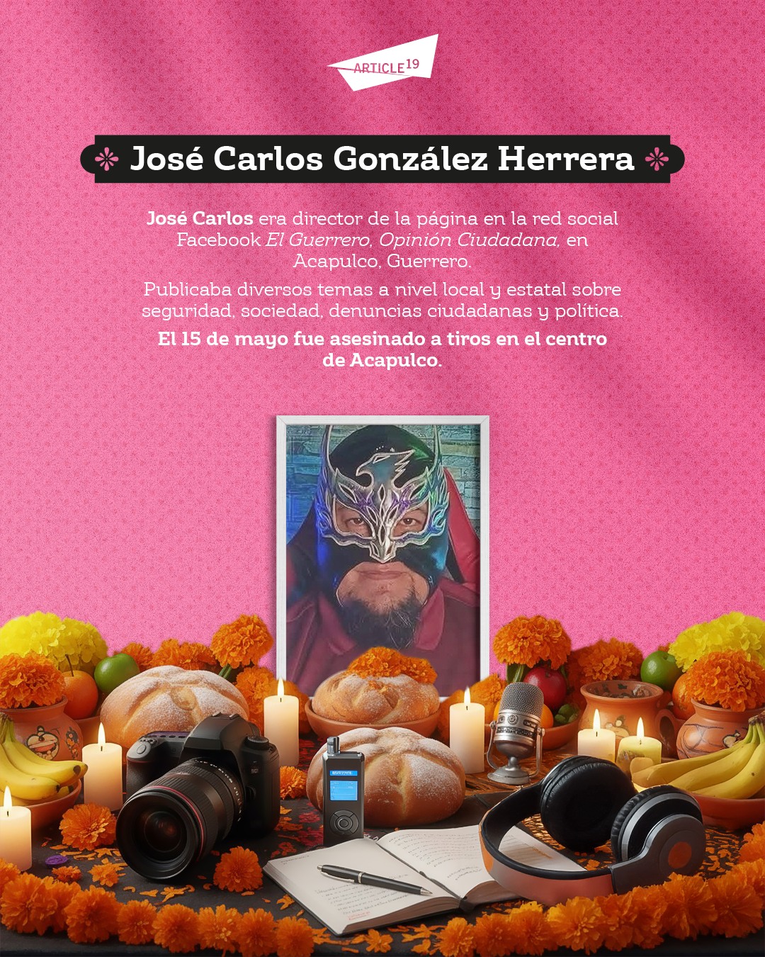 Este 2 de noviembre, Día Internacional para poner fin a la Impunidad en los Crímenes contra Periodistas, y Día de Muertos/as en México, rendimos homenaje a la vida de quienes, en uno de los países más peligrosos para hacer periodismo en el mundo, fueron asesinados/as por informarnos.